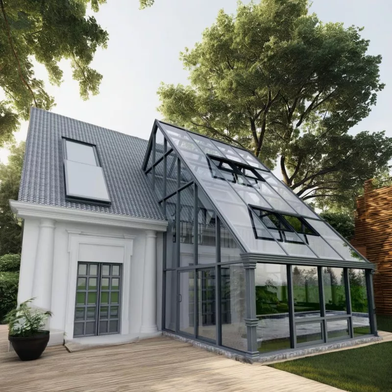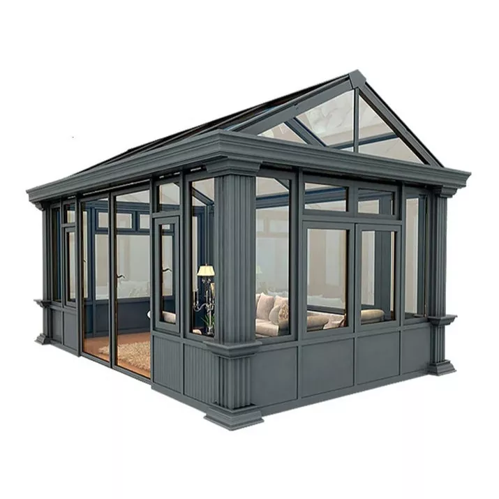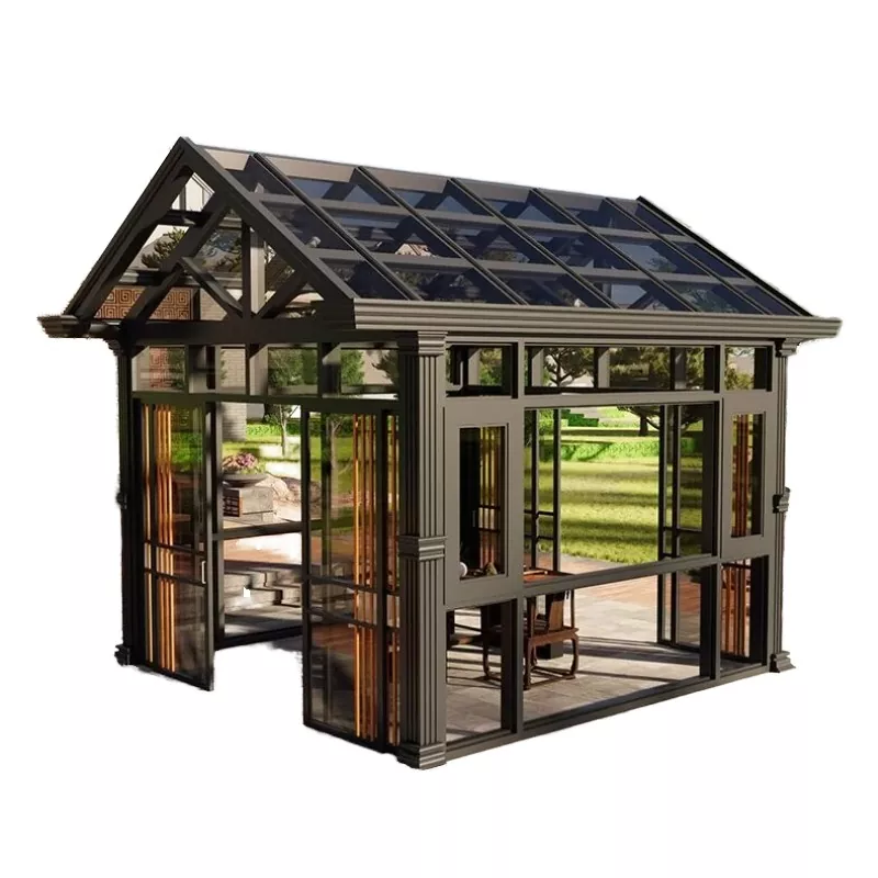 Sunroom paduan aluminium nganggo struktur komposit kaca + pigura sakabèhé. Kolom lan balok ditanggulangi dening konektor tliti, karo sealing lan perawatan anti banyu ing joints; 3% -5% slope got dilindhungi undhang-undhang kanggo ndhuwur kaca, dicocogake karo saluran got sing didhelikake kanggo nyegah akumulasi banyu lan bocor; warna frame bisa custom, ndhukung macem-macem perawatan lumahing kayata frosted, Sampanye emas lan kopi, adaptasi kanggo arsitektur beda gaya. Nggabungake pakaryan lan kaluwihan kasebut, desain sakabèhé ngimbangi kepraktisan, safety lan estetika, lan bisa disesuaikan kanthi tepat miturut dimensi teras.