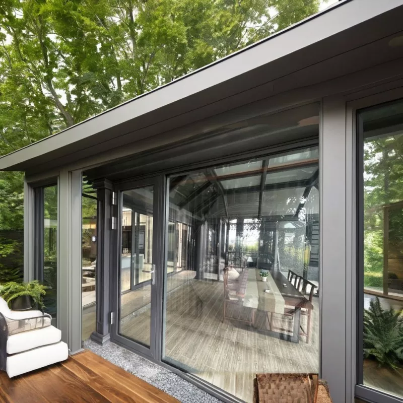 4. Lingkup Kustomisasi: Ndhukung kustomisasi wangun sunroom paduan aluminium, spesifikasi kaca lan pigura warna kanggo nyukupi macem-macem kabutuhan teknik lan dekorasi omah.