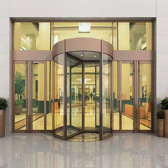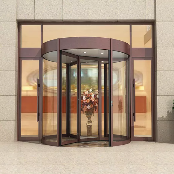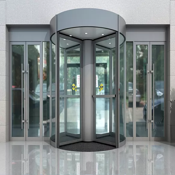 Kauntungan utama lawang puteran yaiku tampilan premium lan kinerja hemat energi sing luar biasa. Nampilake struktur puteran bunder sing digabungake karo panel kaca tempered lan bingkai paduan aluminium, desain kasebut nawakake garis sing mulus lan estetika kelas atas sing ningkatake gambar arsitektur lan pangenalan bangunan apa wae.