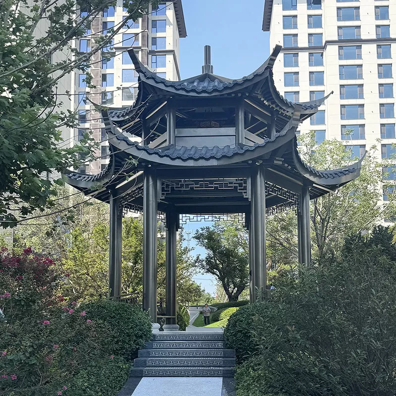 Digunakake kanthi akeh ing papan sing apik banget, plataran gaya Cina, papan budaya lan taman kotamadya, produk kasebut entuk warisan budaya arsitektur kuno lan ngrampungake titik nyeri paviliun tradisional sing rawan bosok lan angel dijaga liwat solusi "tukang tradisional + anti korosi modern", nyedhiyakake layanan khusus kanggo macem-macem proyek lanskap gaya kuno.